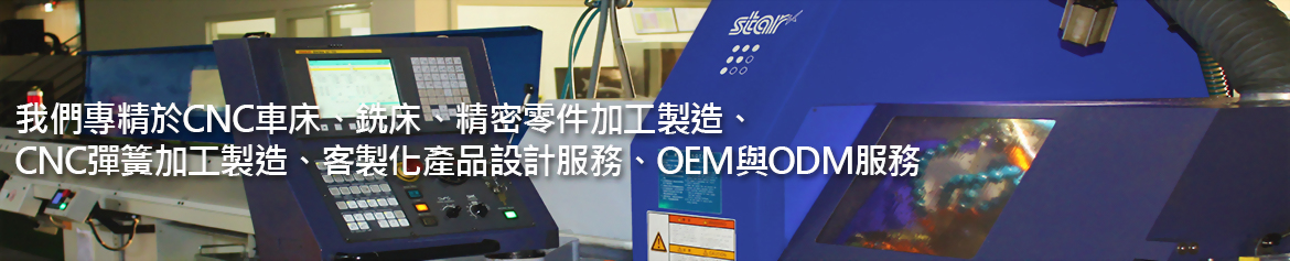 我們專精於CNC車床、銑床、精密零件加工製造、CNC彈簧加工製造、客製化產品設計服務、OEM與ODM服務